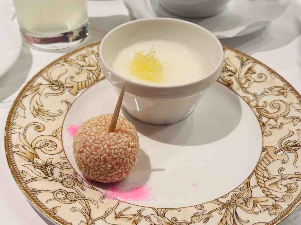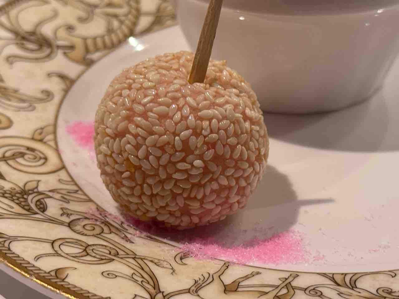 そして面白かったのが、「芝麻球(桜あん)」に“桜でんぶ”を添えてご提供くださっていたんです