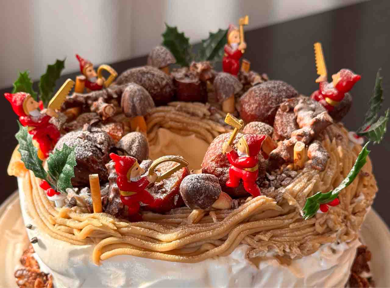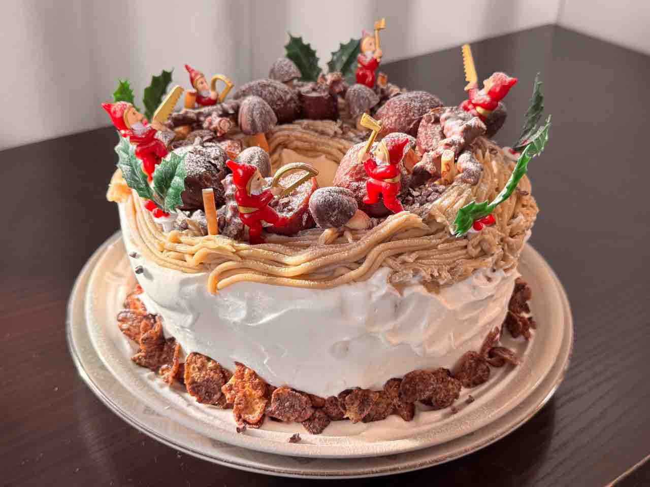 でもまあその上に栗やきのこの山や小人を目いっぱい飾ったので、これも何とかごまかせました