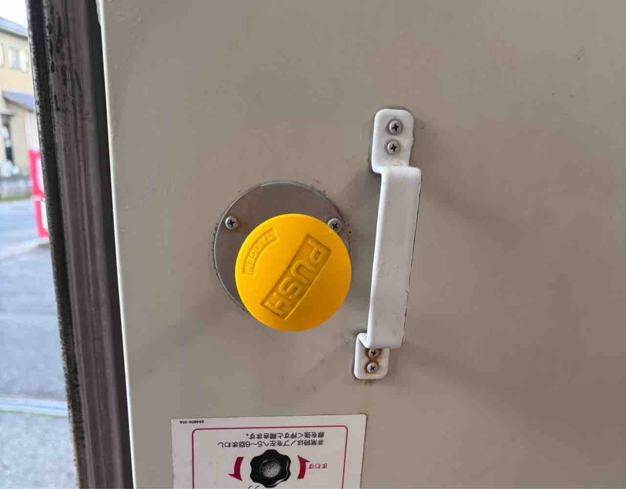 万が一中に人が閉じ込められたとしても、この脱出用のボタンを押せば中からドアが開けられるようになっています。