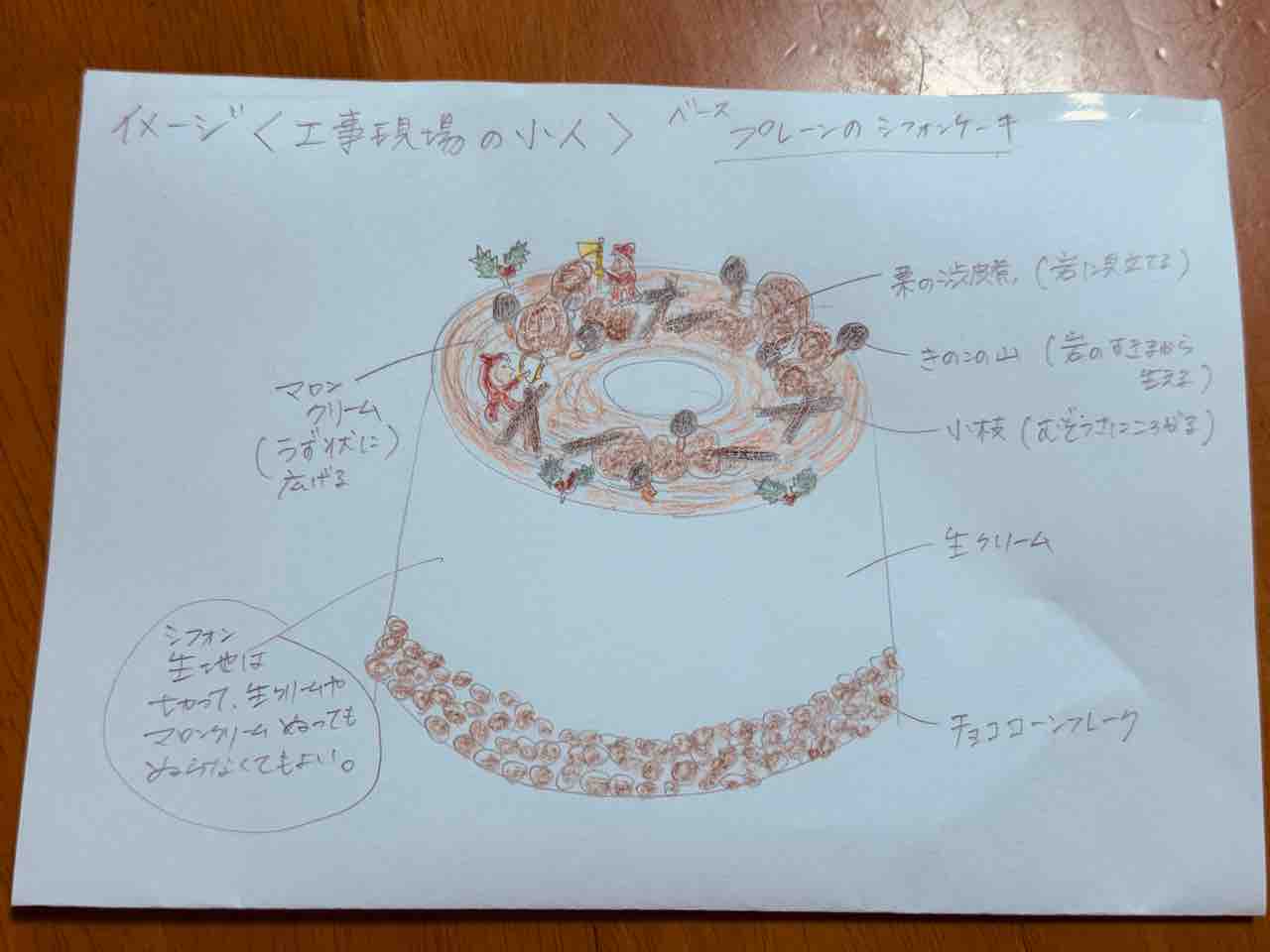 ケーキは私が作ったんですが、姉がケーキのイメージ図を書いてくれました。