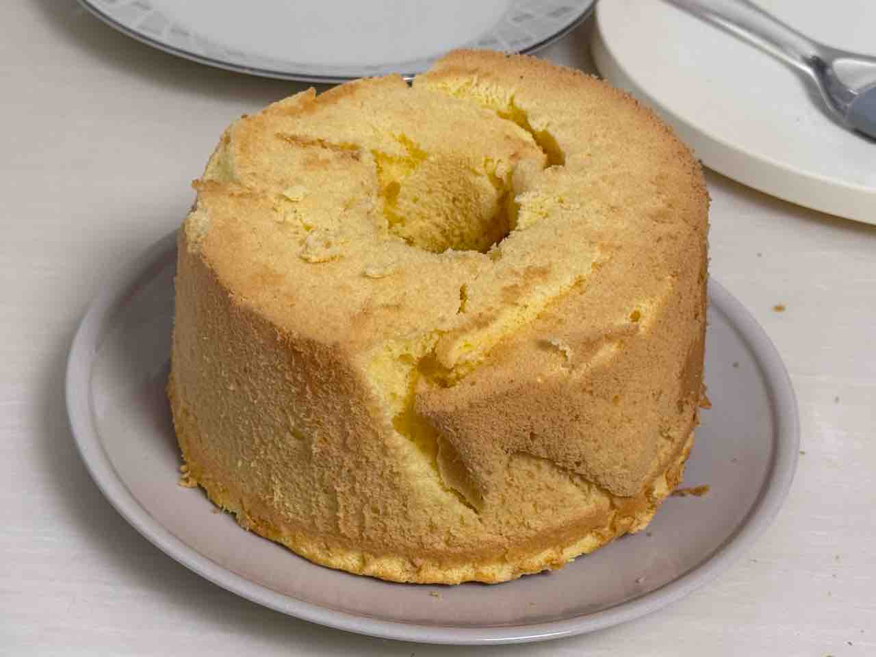 まず、シフォンケーキを型から外す時に失敗しました・・・