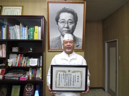 ← いただいた表彰状を額縁に入れて、常務に持ってもらいました