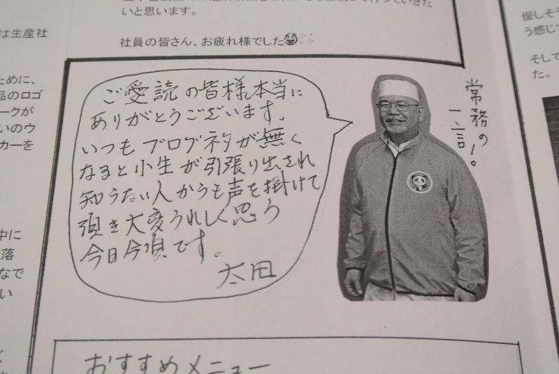 メッセージには「ご愛読の皆様本当にありがとうございます。いつもブログネタが無くなると小生が引っ張り出され知らない人からも声を掛けて頂き大変うれしく思う今日この頃です。太田」と書いてあります