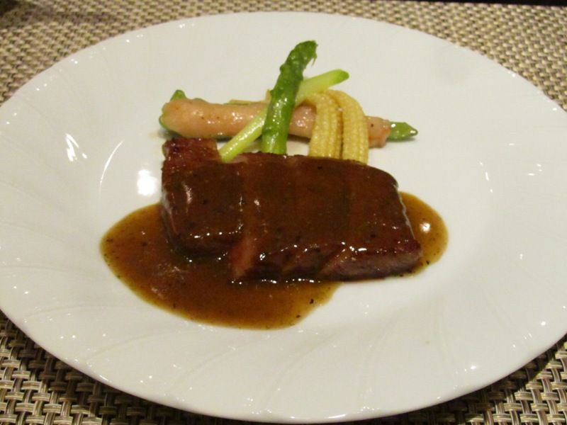 ← 「鶏のコンフィと帆立ウニソース炒め」。