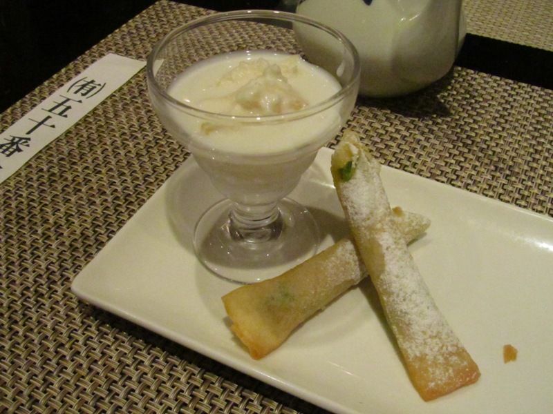 ← デザートは「グレープフルーツプリンとアボガド春巻」です。最後まで美味しくいただきました。