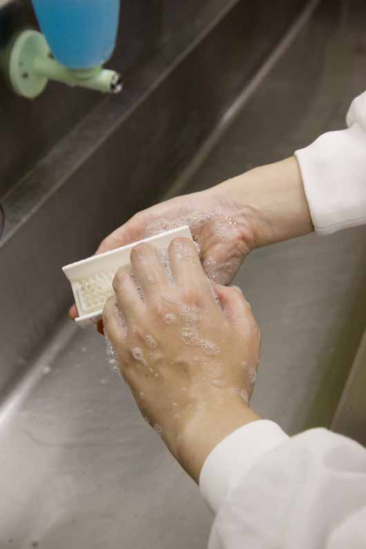 ↑ 工場入室前の手洗い場で使用します