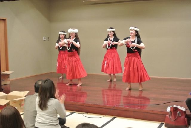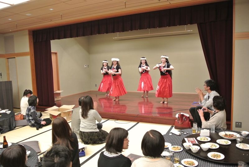 ↑ パートさんのOさん、Mさん、Hさん、Tさんがフラダンスを披露してくれました