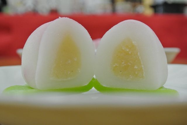 ↑ 中には“蓮の実入り”の白あんが入っています。