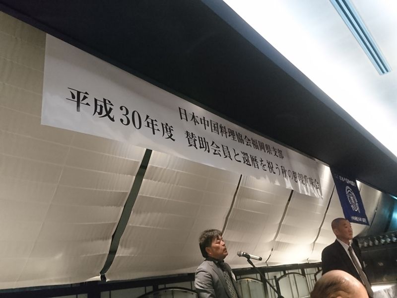 今週の月曜日、福岡市中央区天神の「華都飯店(シャトーハンテン)」にて、「日中協福岡県支部 賛助会員と還暦を祝う秋の懇親賞味会」が行われました