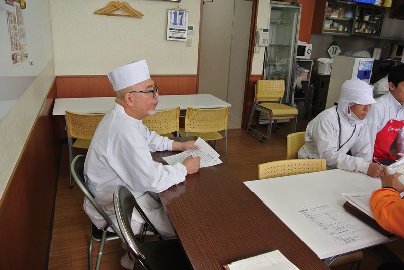 ↑ ご意見番の常務は、製造上での注意点などを伝えます。