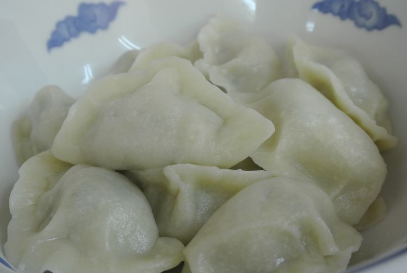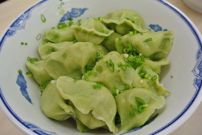 緑の水餃子は、皮にはニラが練りこんであり、餡にはエビ・ニラ・卵の3種類の具材が入っていて、色もキレイでとっても美味しかったです