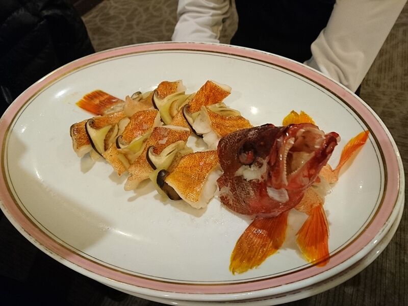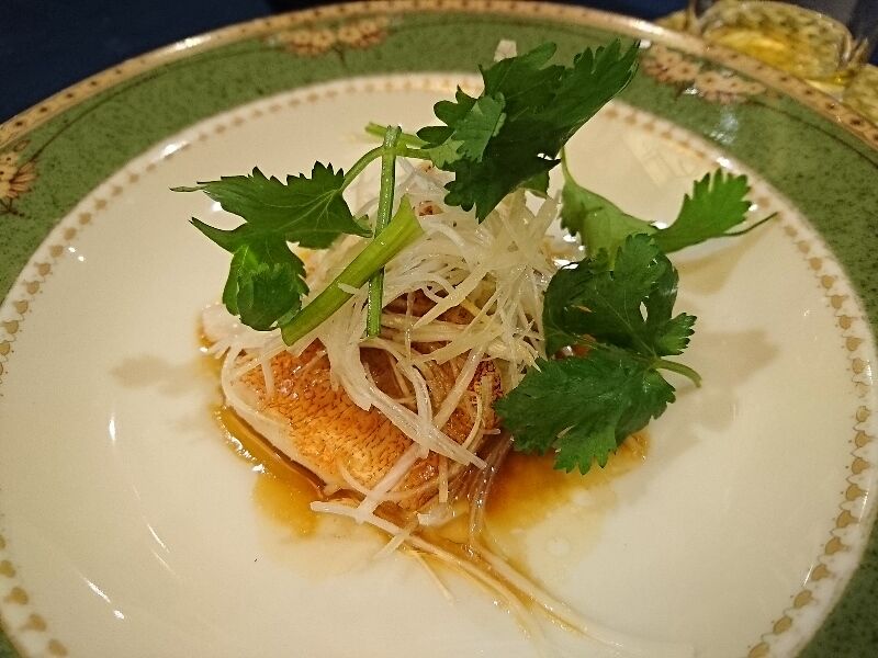 「天草産アカハタとキノコの姿蒸し」です。