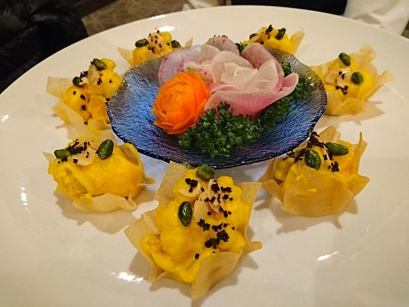◆セミエビの南瓜クリーム炒め トリュフ添え