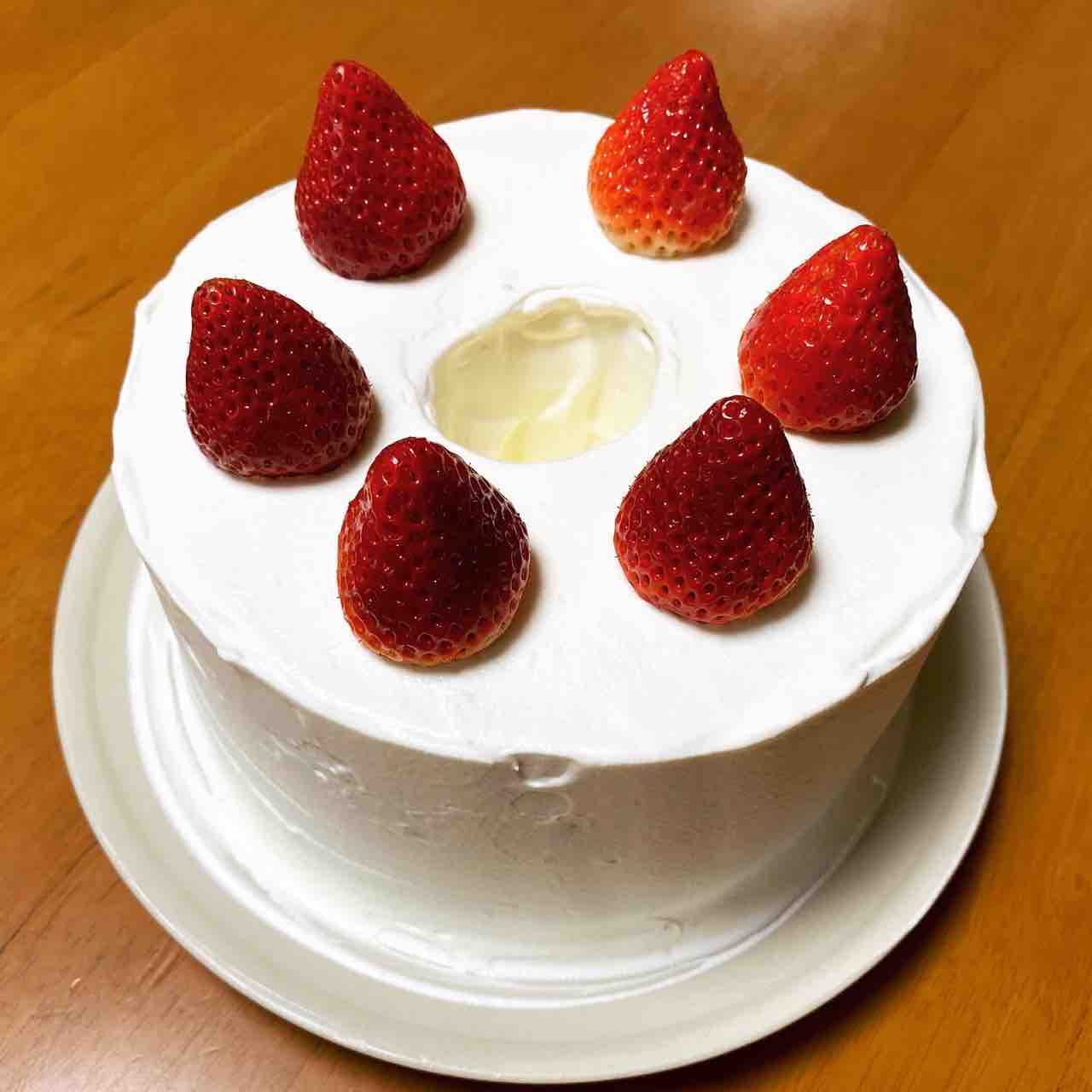 ↑ ある時には、シフォンケーキでいちごケーキも作りましたよ〜