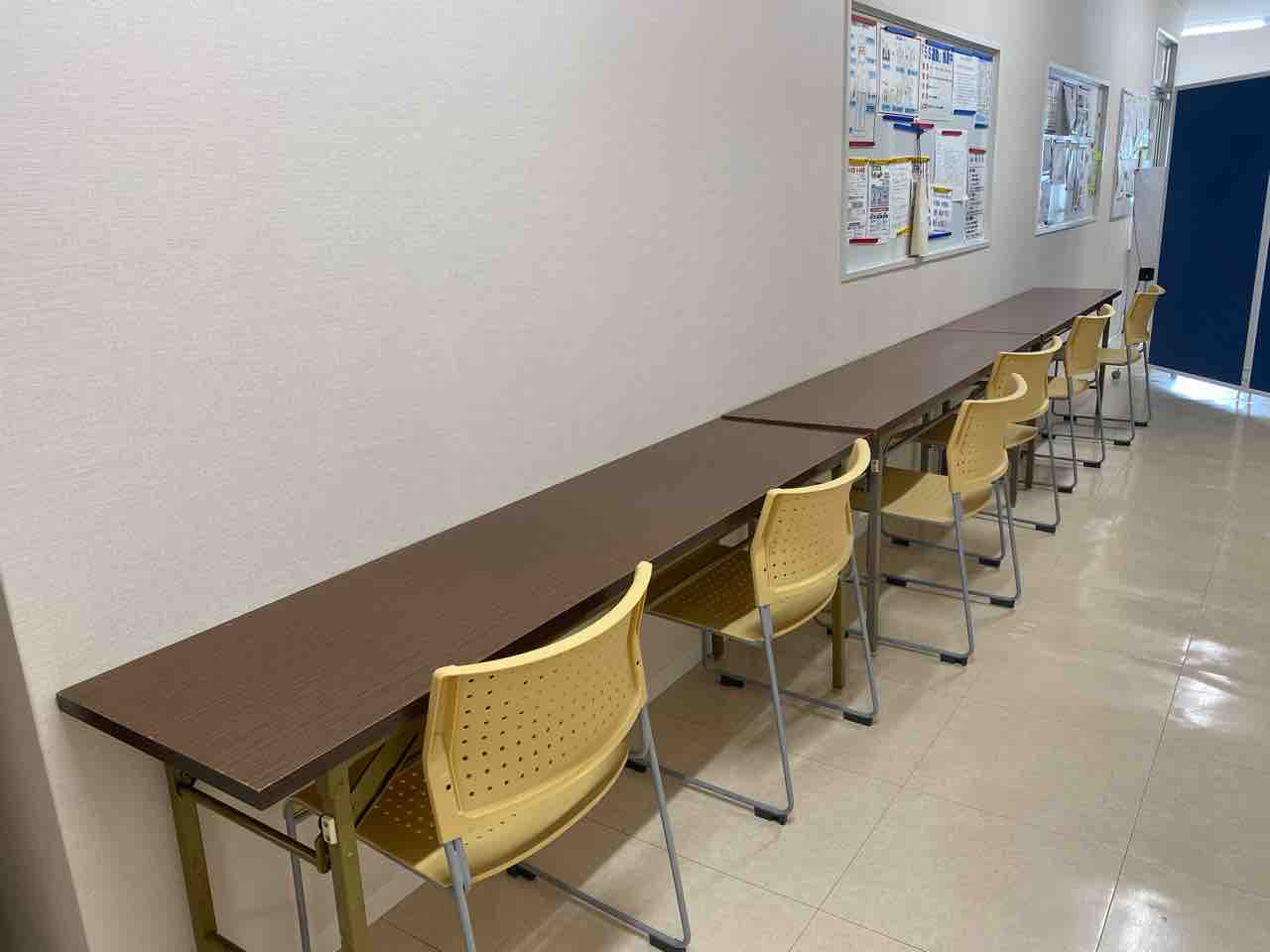 ↑ 廊下にも壁際に席を作りました。