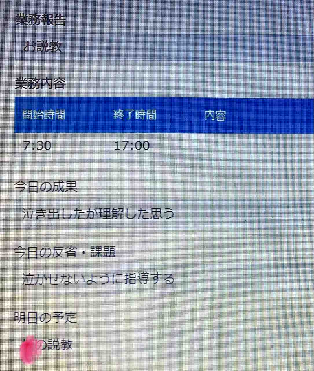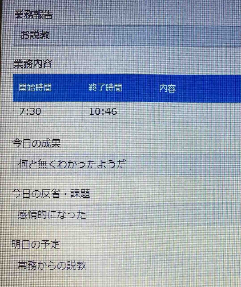 (H課長)日報の記入は2回練習しましたが、H課長の2回目の練習もお説教シリーズの続きで・・・