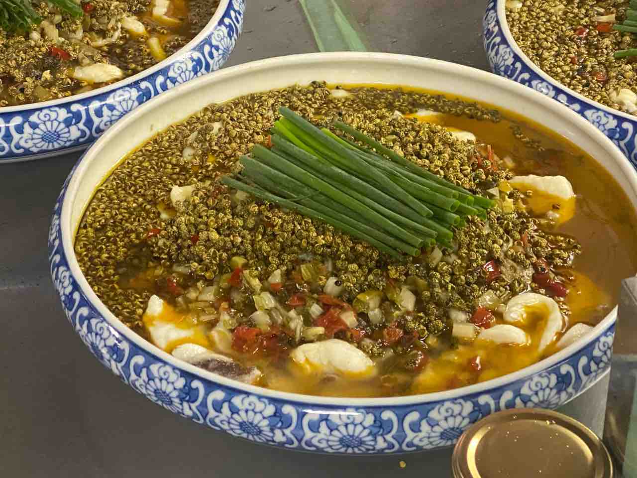 この料理のネギの下に盛り付けてある丸いつぶつぶのものは、全部山椒なんです