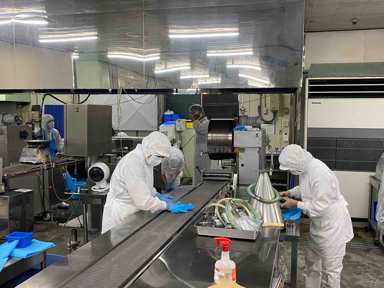 ↑ こちらが入れ替える機械、1号機です。(春巻皮の製造機が3台あるので、1号機・2号機・3号機と名前をつけています)