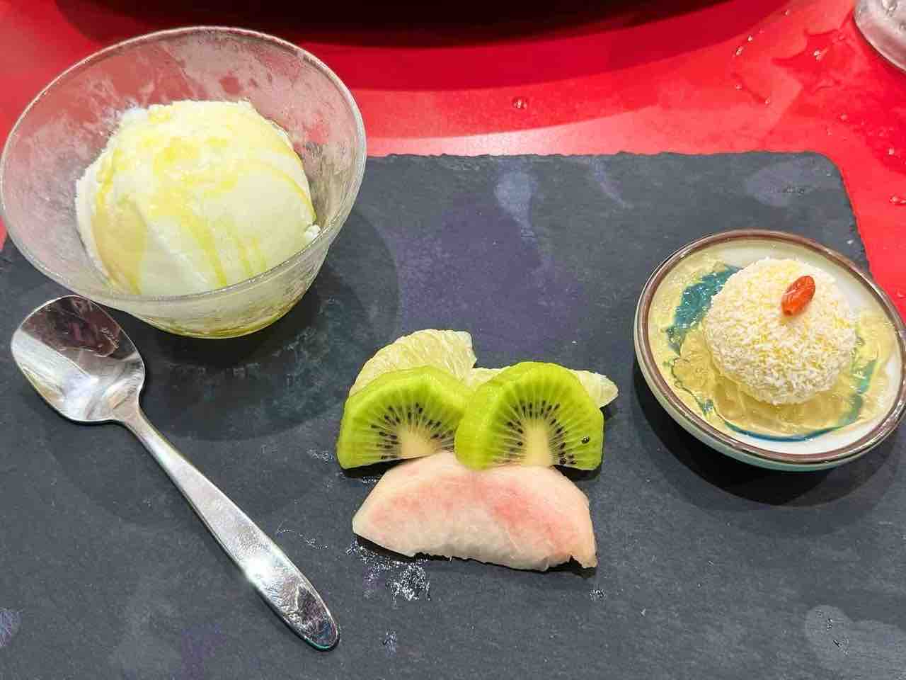 マンゴーノーミーチとフルーツとアイスの三種盛りです。
