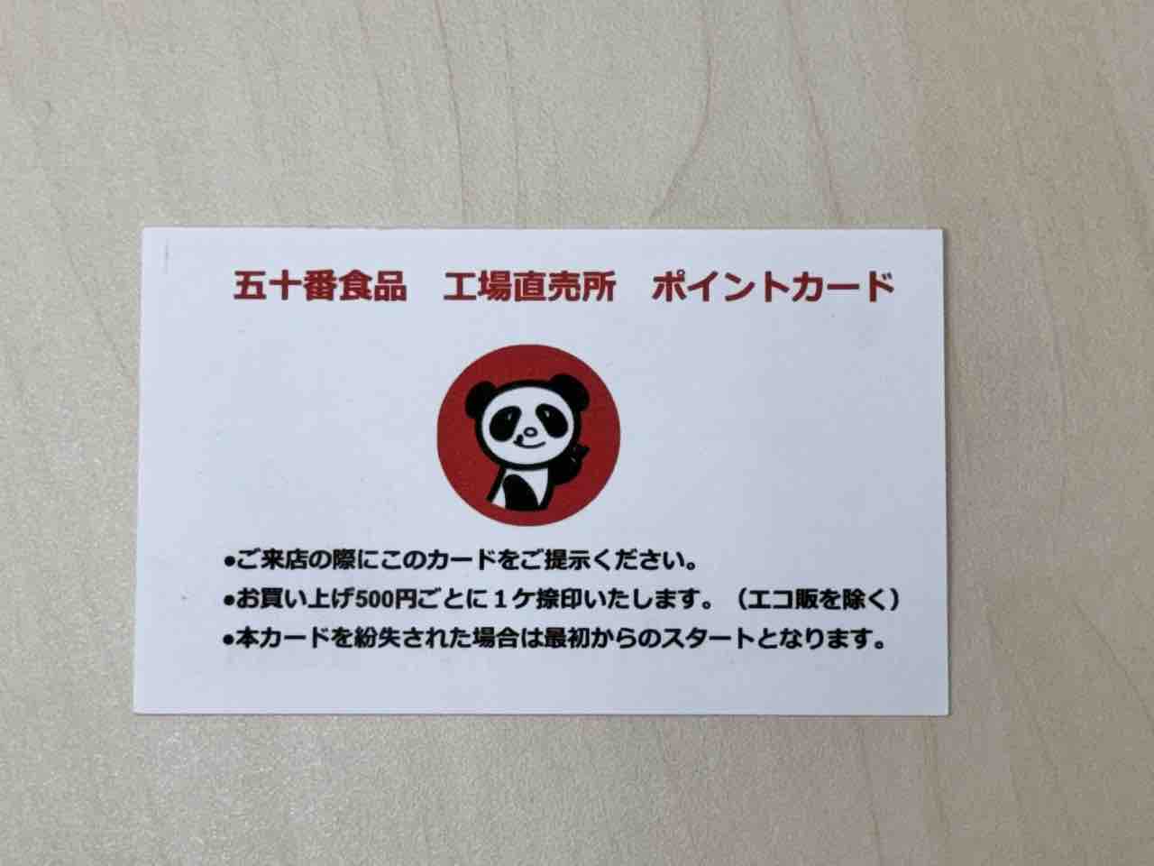 五十番食品の工場直売所にはポイントカードがあります。