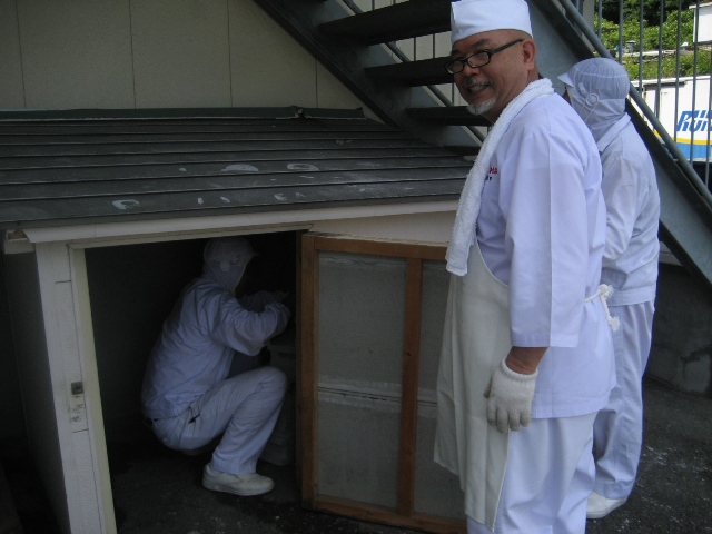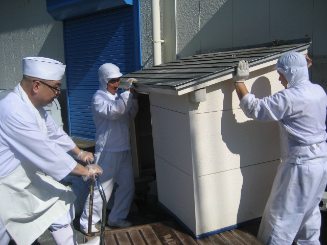今日は暑い中、常務と工場長と社員2人が朝から大工仕事をしてくれました