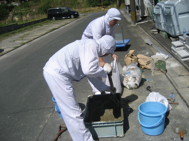 ← セメントを練っています。すごくキツそう