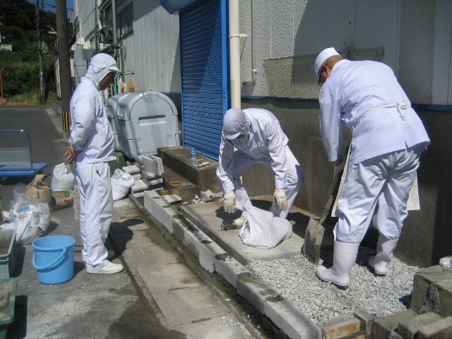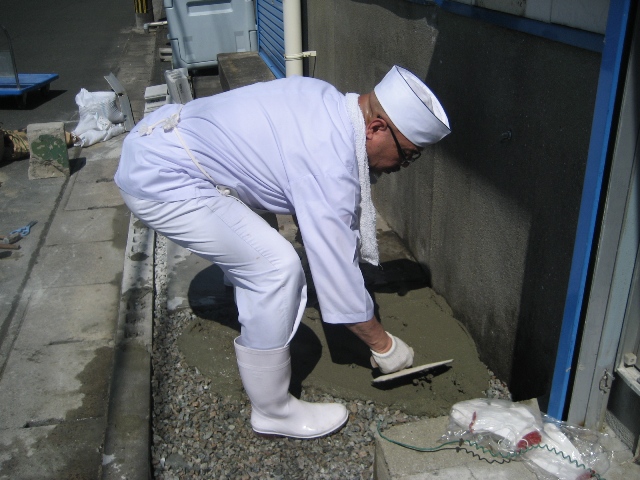 ← 常務がセメントの塗り役です