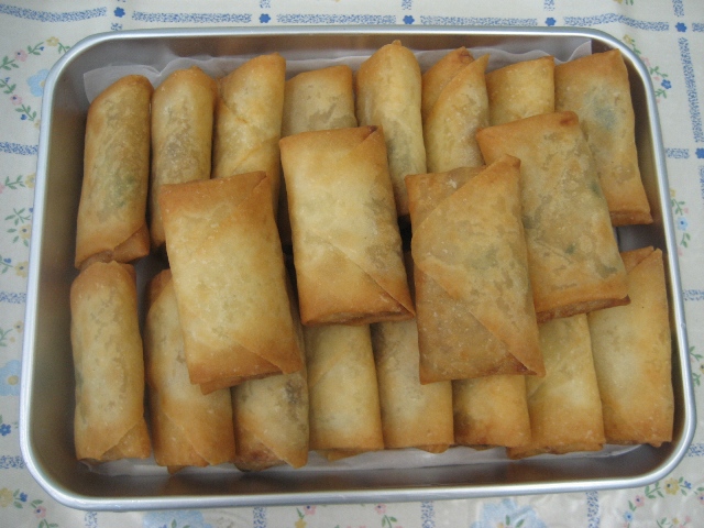 ある料理店さんから、現在お店で手作りしている春巻を弊社で製造してほしいという依頼があり、昨日そのお店のコックさんに作り方の指導に来ていただきました