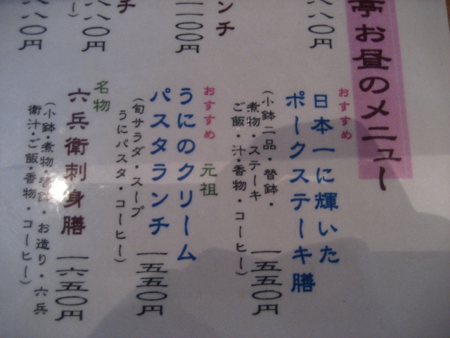 ← 「おすすめ」に弱い私は、「日本一に輝いたポークステーキ膳」と「うにのクリームパスタランチ」でしばらく悩みましたが・・・うにのパスタを食べることにしました