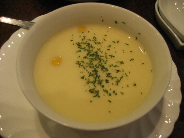 ← 最初にサラダとかぼちゃの冷製スープが出ました。このかぼちゃのスープが本当に絶品
