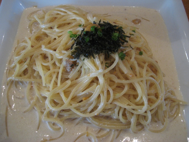 クリームパスタですがクリームがしつこすぎず、だけどうにの味はしっかりして、何とも言えない奥深い味わいでした