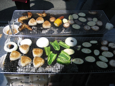 ↑ 肉に野菜に焼きおにぎりに、たくさん焼いて食べました
