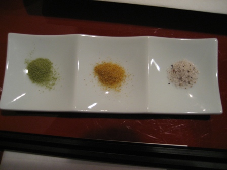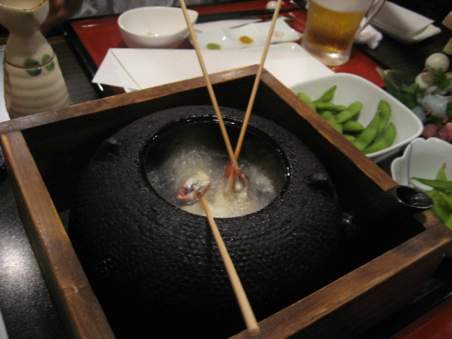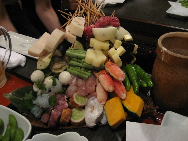 ← ↑ 机の真ん中に置いてある鉄鍋で、自分たちで衣をつけて揚げながら食べれるんです