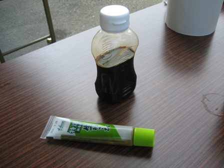 ↑ パートさんの一人が、なんとマイわさびとマイ醤油を持ってきていました