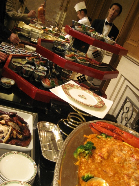 ← ↑ 料理はビュッフェ形式で、美味しい料理がたくさん並んでいました