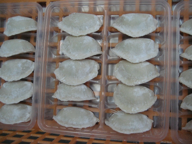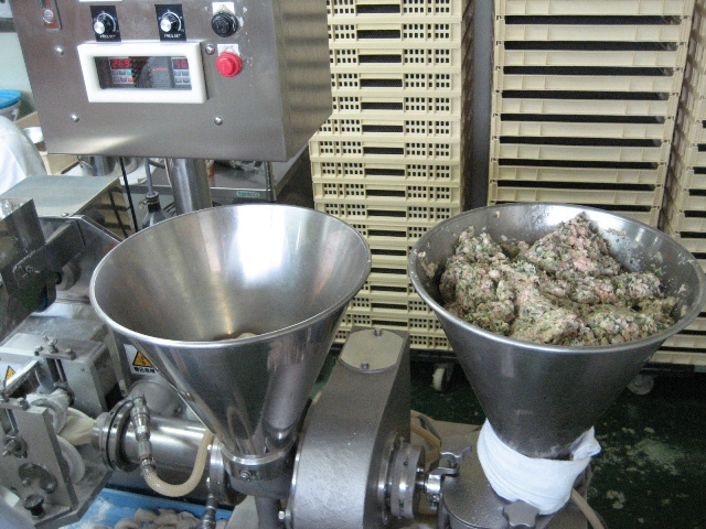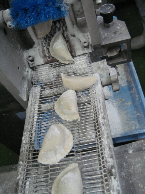 ← ↑ 筒状のものが水餃子の形に分割されてでてきます。