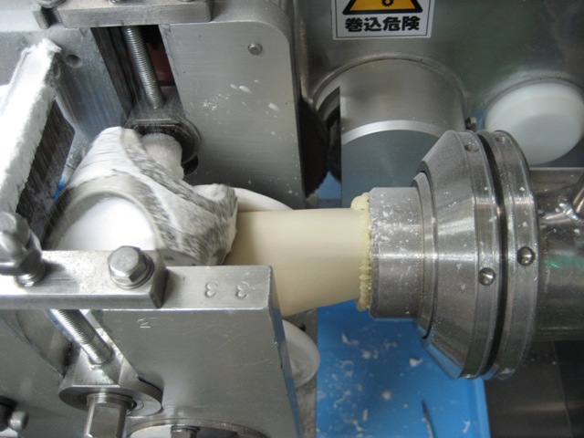 ← 生地の中に具が包あんされたものが、筒状になって出てきます