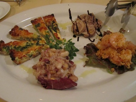 ← こちらの料理には1本の人参で作った魚の彫物が添えてありました