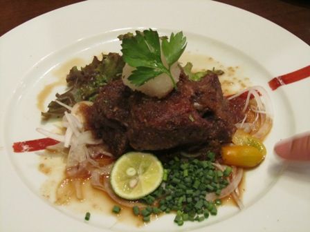 ← こちらは「和牛ほほ肉のおろしステーキ」です。