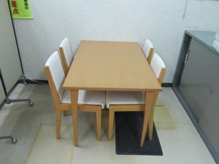 なんだか家庭の台所にあるようなテーブルと椅子ですが・・・常務が格安で買ってきてくれたので文句は言えません。