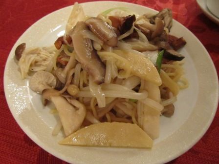 ← できた料理は「季節のきのこと野菜の炒麺」。 たくさんのきのこにトリュフも使った贅沢な麺料理です