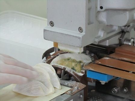 ← 餃子の皮が所定の位置に移動します。移動したあと・・・