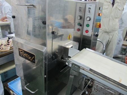 こちらの機械に粉付け機をセットして分割してみて、品質的に変わりがないかを一度見てみたかったので、デモ機をお借りしました。