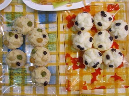 先日機械屋さんから粉付け機のデモ機を借りて試作した商品(寿桃)の試作結果が出ました