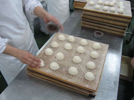 これは何の商品を作るテストをしているかというと、「寿桃」の製造のテストです。