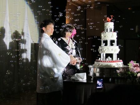 ← 途中で新郎がエビスビールのタンクを背負って全テーブルに注いで回っていました