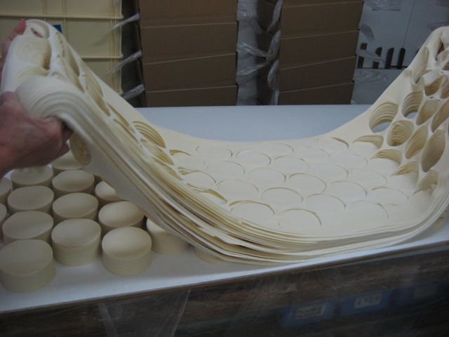 ← シート状になった生地は丸くくり抜きます。