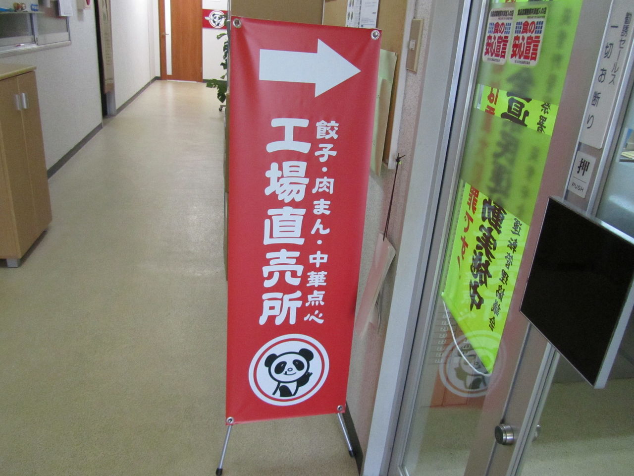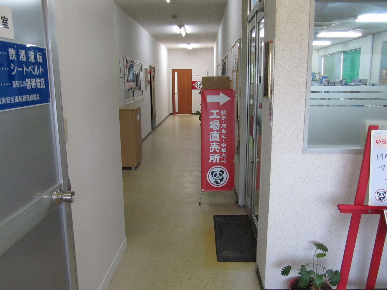 ← ドアを開けて見える景色。長い廊下がありますが・・・一体どこに工場直売所があるのか