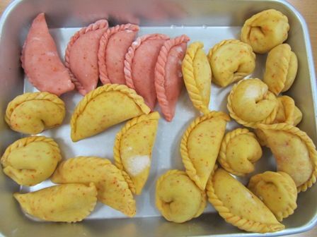 ← ピリ辛感を出すために皮を赤と黄色で着色したそうですが、茹でると色が薄くなってしまうのでもう少し改良が必要なようですネ