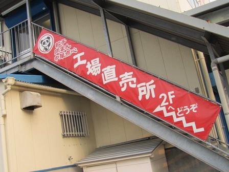 ← 階段の手すりに「工場直売所 2Fへどうぞ」と書いてあります。